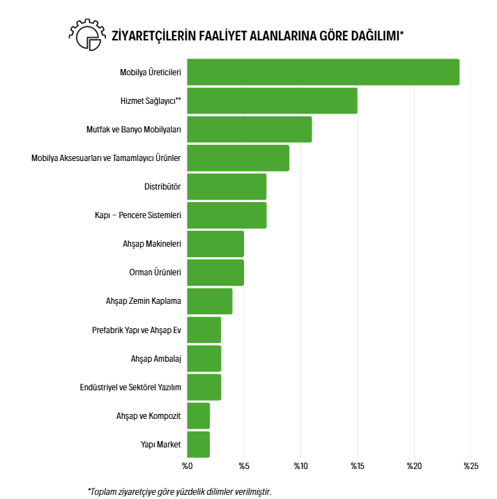 WoodTech 2025’in ziyaretçi profili, fuarın mobilya ve dekorasyon sektöründeki karşılığını açıkça ortaya koydu. Ziyaretçilerin faaliyet alanlarına göre dağılımında mobilya üreticileri, açık ara en büyük grubu oluşturdu.